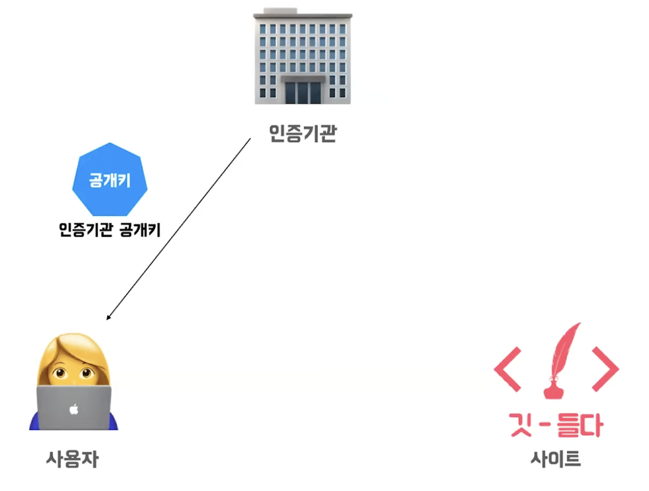 인증기관->사용자 인증기관 공개키