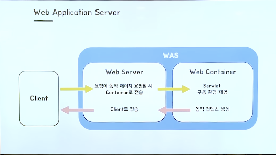 Was는 애플리케이션을 실행시키고 DB를 연결하고 어떤 동작을 수행시켜 만들어진 데이터를 줄 수 있는 기능을 하는 서버