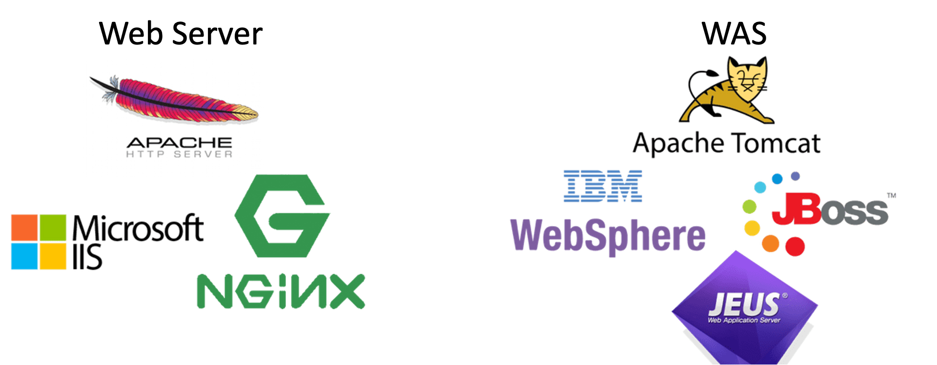 web server에는 apache, nginx 등이 있고 was에는 tomcat, ibmsphere 등이 있다.