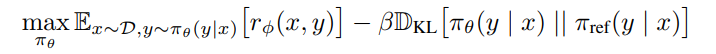 마지막으로는 LM을 학습시키는데, 위에서 학습한 Reward Model이 출력하는 reward를 기반으로 KL-constrained Reward Maximation Objective를 구성한다. 를 사용하는 것은 Reference model과 policy(update된 LM)이 너무 멀어지지 않도록 하기 위함이다.