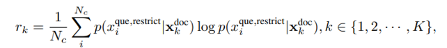 - perplexity of the question xque conditioned on different contexts xkdoc