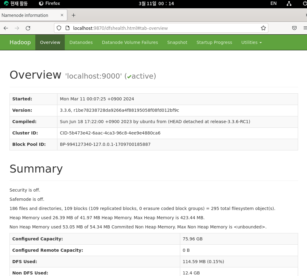 2. Hadoop 분산 파일 시스템(HDFS) 데몬 실행