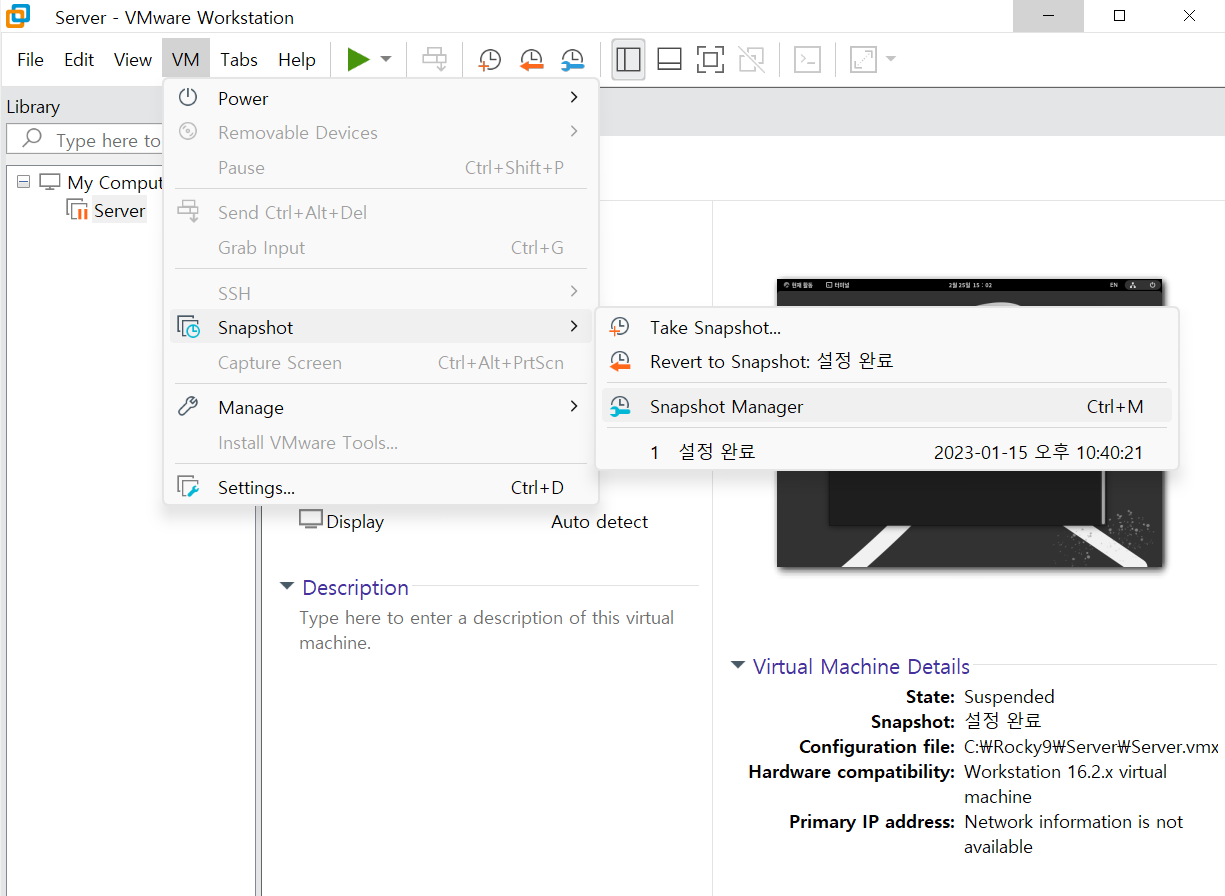 VMware workstation pro를 킨 후 [vm] - [Snapshot] - [Snapshot Manager]