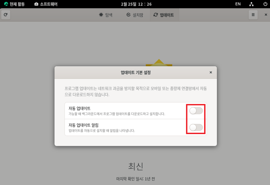 소프트 업데이트 기능 끄기