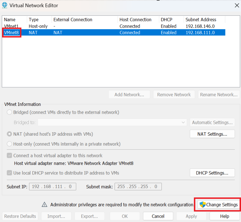 가상 머신 네트워크 정보 파악 및 변경