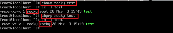 - chgrp rocky test : test파일의 그룹을 root -> rocky로 바꿈