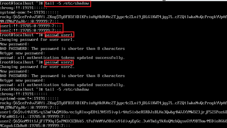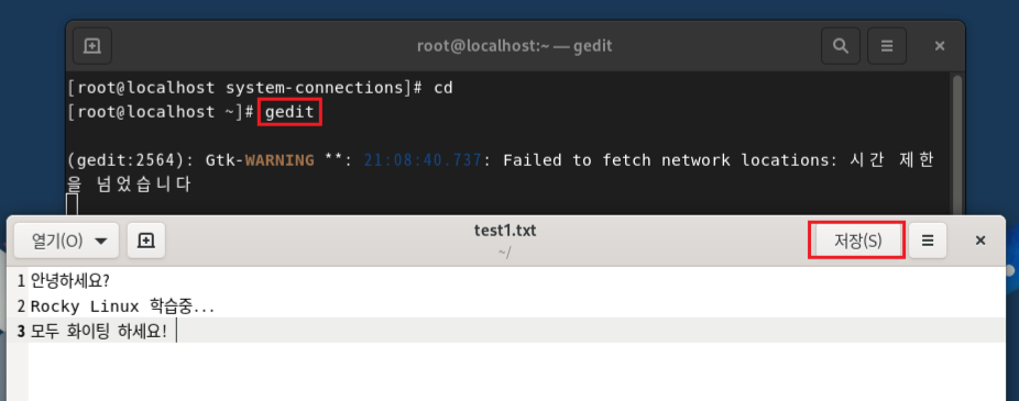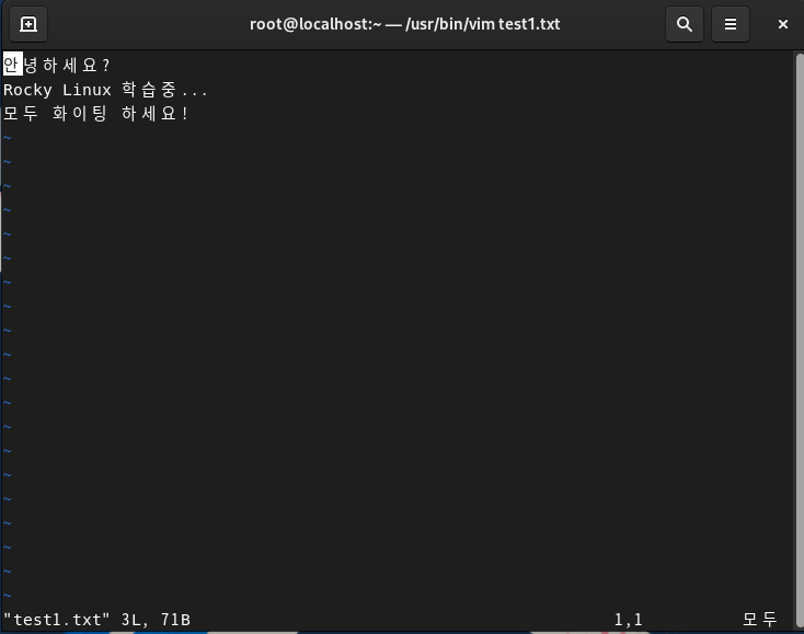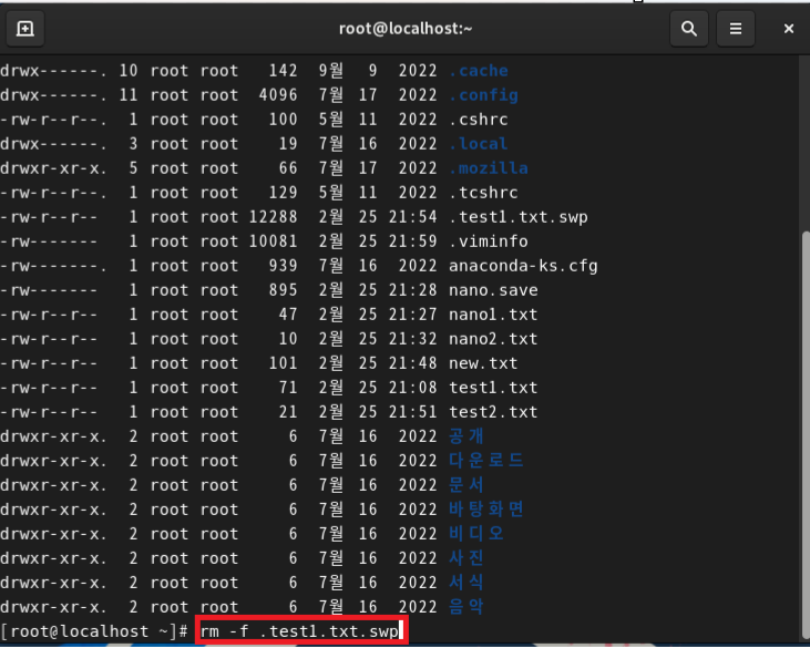 - 다시 root사용자로 접속 후 mv test ~rocky를 통해 text를 rocky 홈디렉터리로 이동시킴
