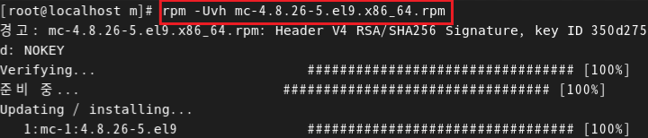 rpm -Uvh mc-~를 통해 mc 패키지 설치
