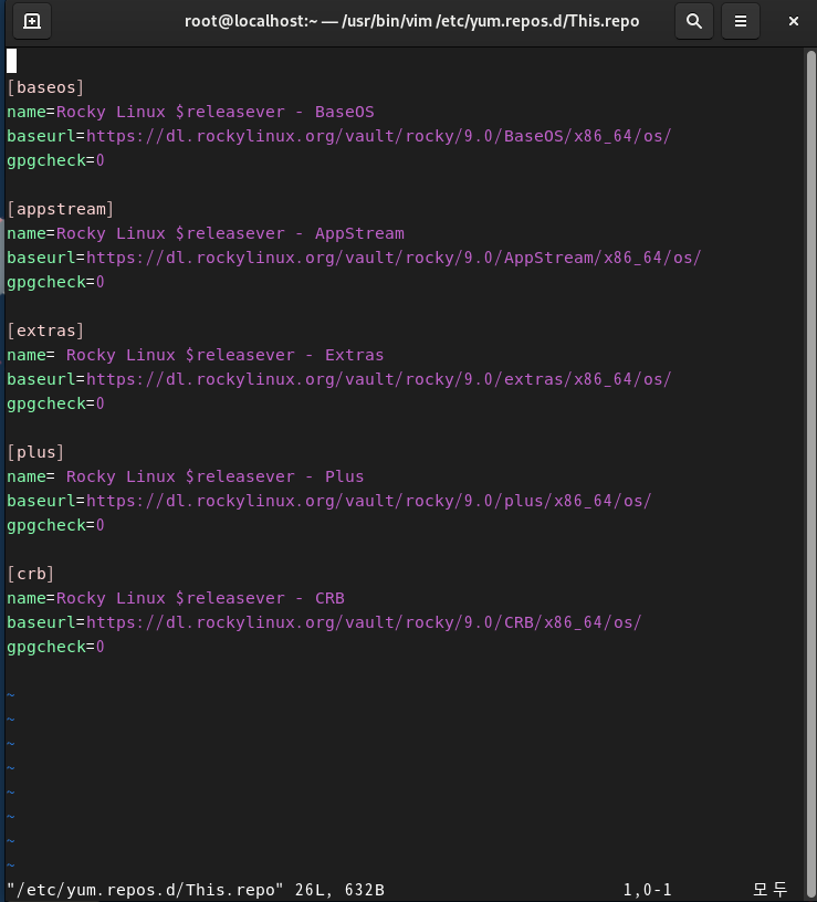 - baseos, appstream, extras는 자주 사용한다. 즉, 특정 파일을 dnf로 설치한다면 This.repo 안에 있는 대상의 URL 주소를 통해 인터넷에서 해당 파일을 다운로드 해오는 것.