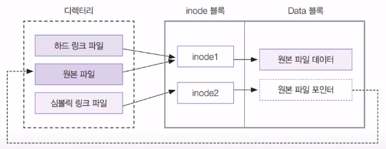 - 하드 링크를 생성할 때는 원본 파일의 inode를 가리키는 새로운 디렉토리 엔트리(하드 링크 파일)가 생김