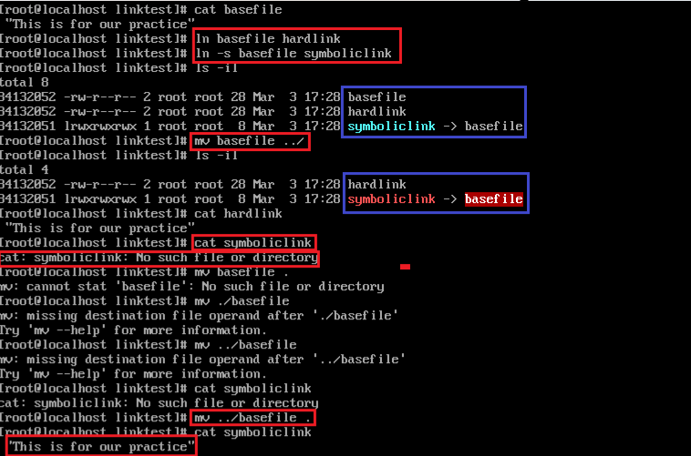 - ln basefile hardlink, ln -s basefile symboliclink를 통해 하드링크와 심볼링링크 생성