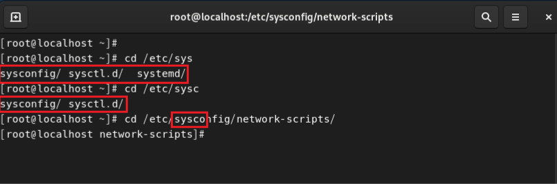 - cd/etc/sysconfig/network-scripts/를 입력할 때 cd/et[Tab]sysco[Tab]network[Tab]/를 입력하면 됨