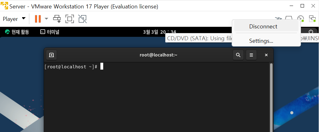 - 터미널 > "shutdown -rnow", "reboot", "init 6"