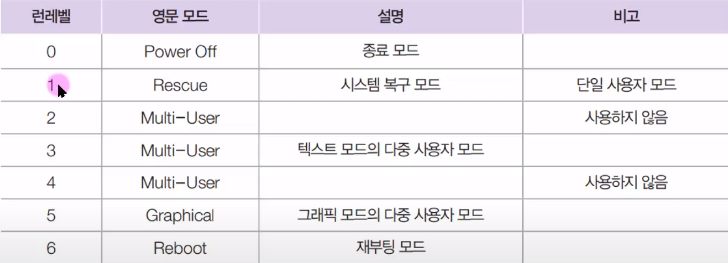 - init2~4 는 텍스트모드 부팅을 의미하는데 init3만 주로 사용