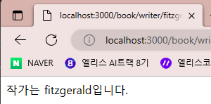 http://localhost:3000/book/writer/fitzgerald 로 이동하면 다음과 같은 화면이 나온다.