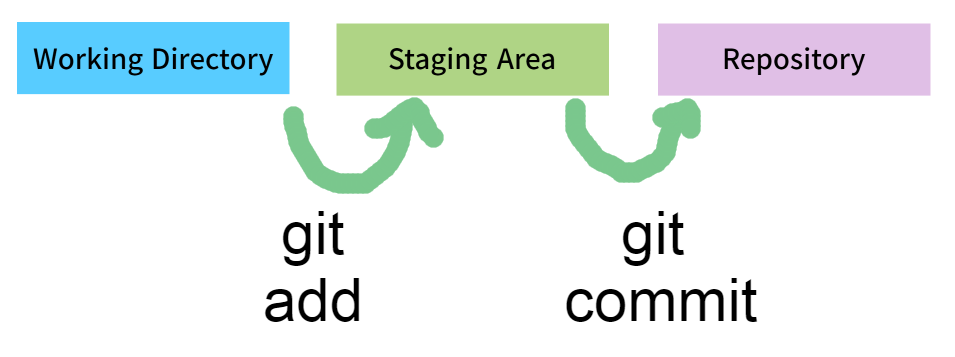 작업영역에서 git add를 사용해 스테이지 영역에 올리고, git commit으로 레포지토리에 올린다.