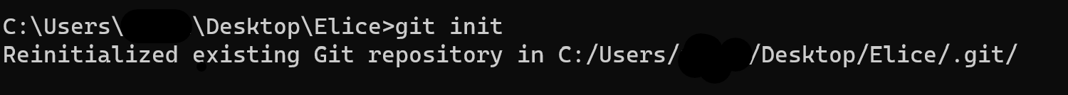 git init시에 폴더의 경로를 위처럼 입력하면 편하지만 적용이 안 되어서 귀찮더라도 cd로 경로를 옮긴 후에 사용하는 게 좋을 것 같다.