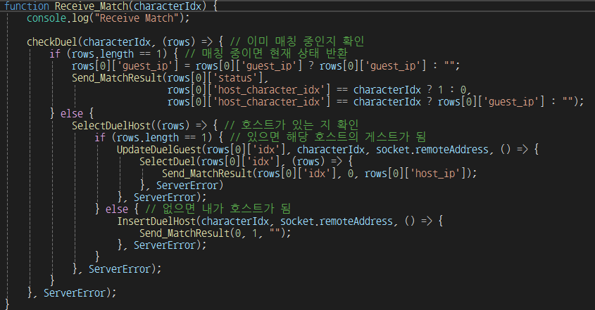 회원가입 구현때와 마찬가지로.. 콜백 지옥을 통해 일단 매칭 정보를 DB에 넣는 것 까지는 시간이 걸리긴 했어도 무난히 성공했는데..