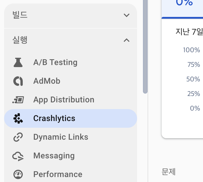 에러가 일어나는지 확인하기 위해 디버깅을 강제로 종료하고 firebase > 실행 > crashlytics 로 가자.