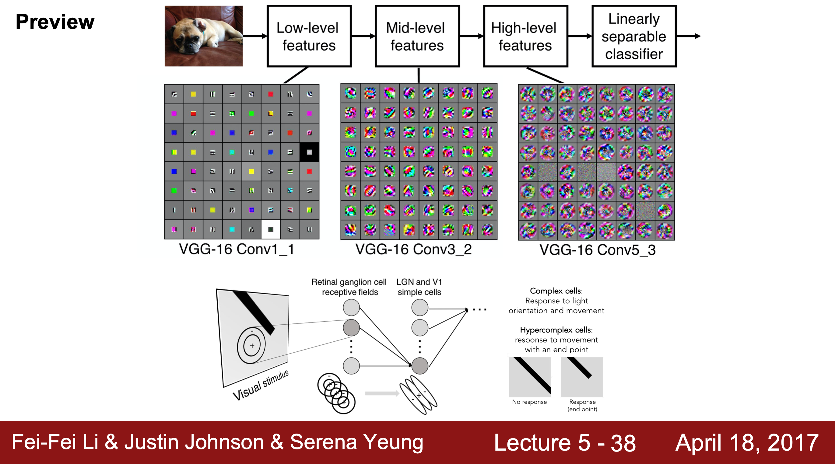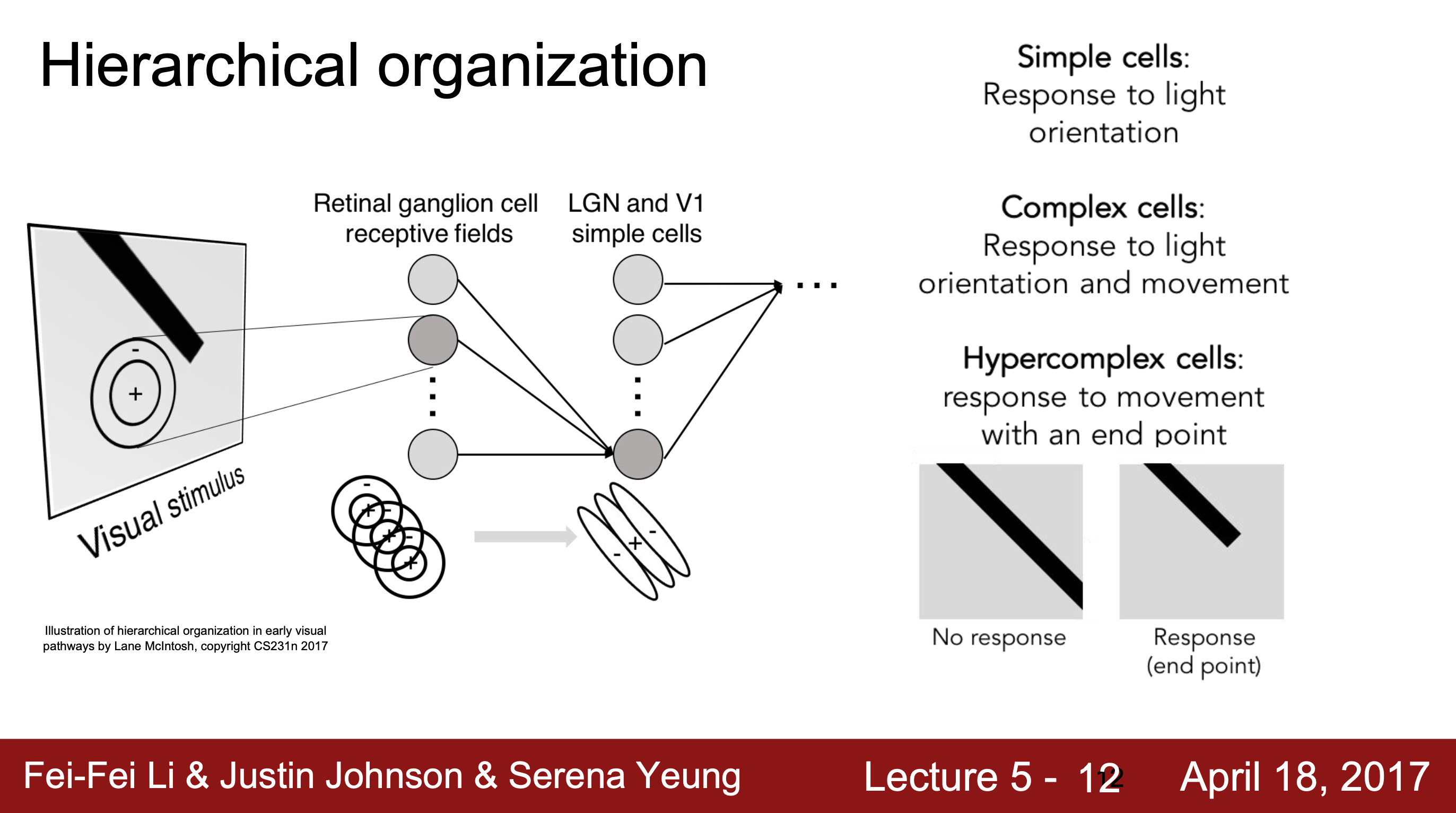 1959년, Hubel과 Wiesel은 시각 피질의 뉴런이 어떻게 작동하는지 연구하였고 아래의 결과를 관찰하였다.