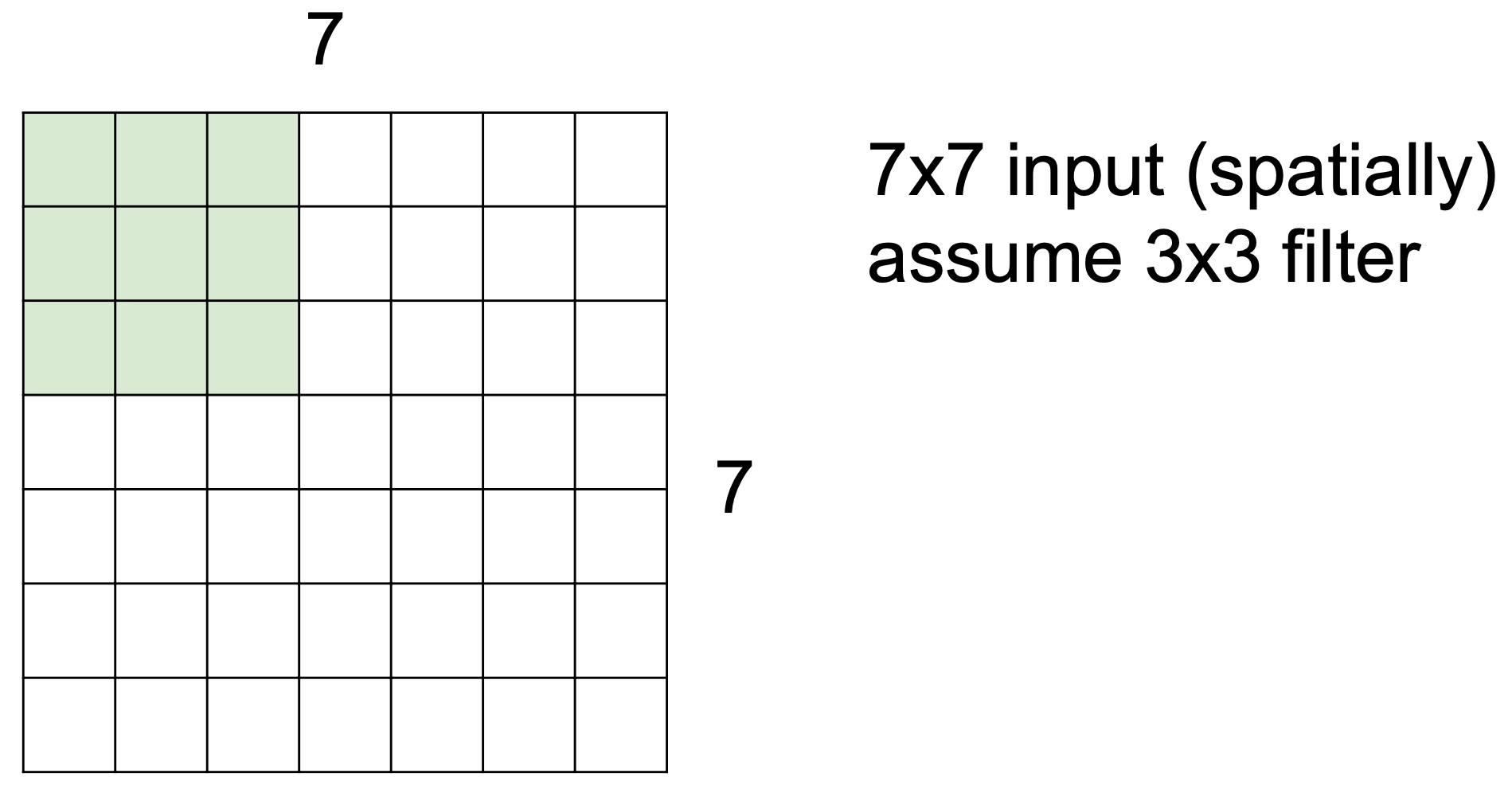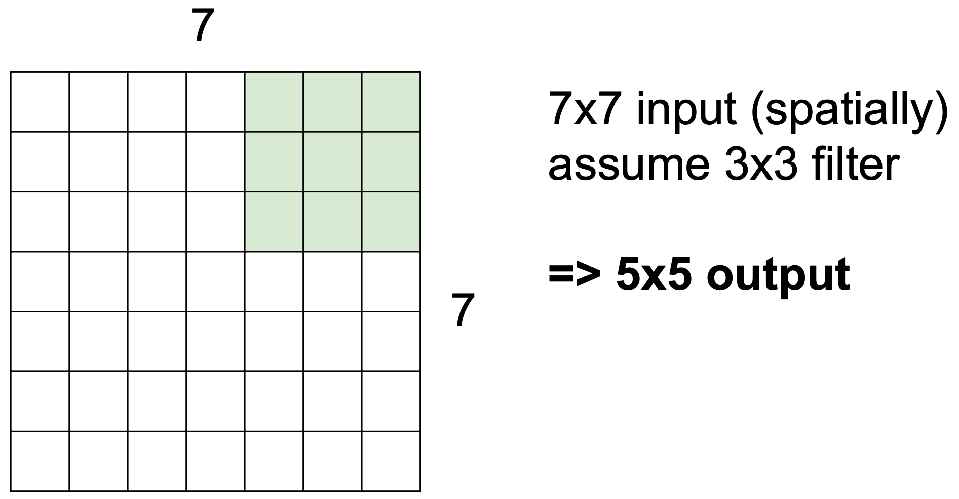 => N : 입력 이미지의 크기, F : filter의 크기, stride : 보폭의 크기, P : padding 값이라 할 때, activation 값 = (N+2*P-F)/stride + 1