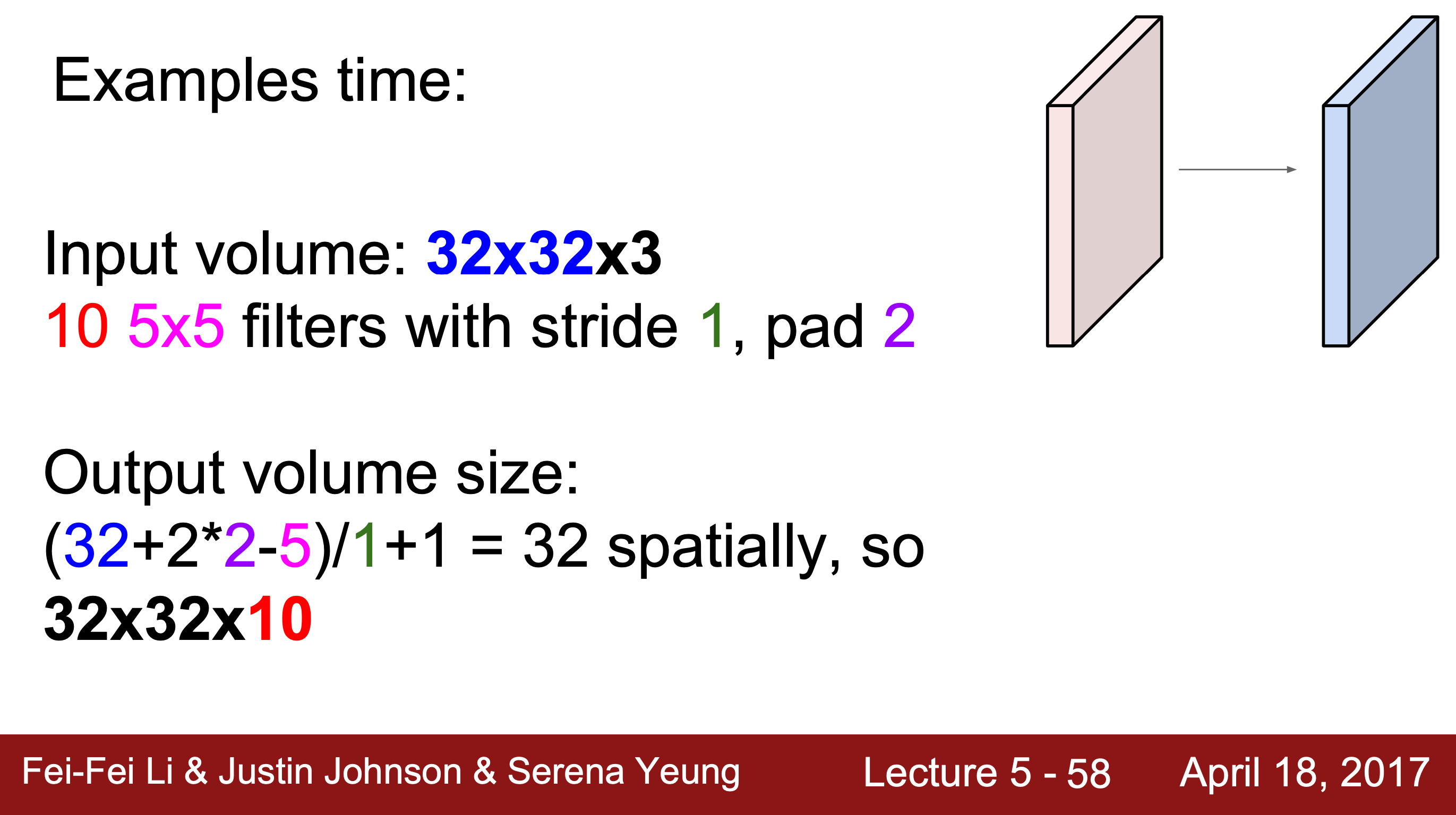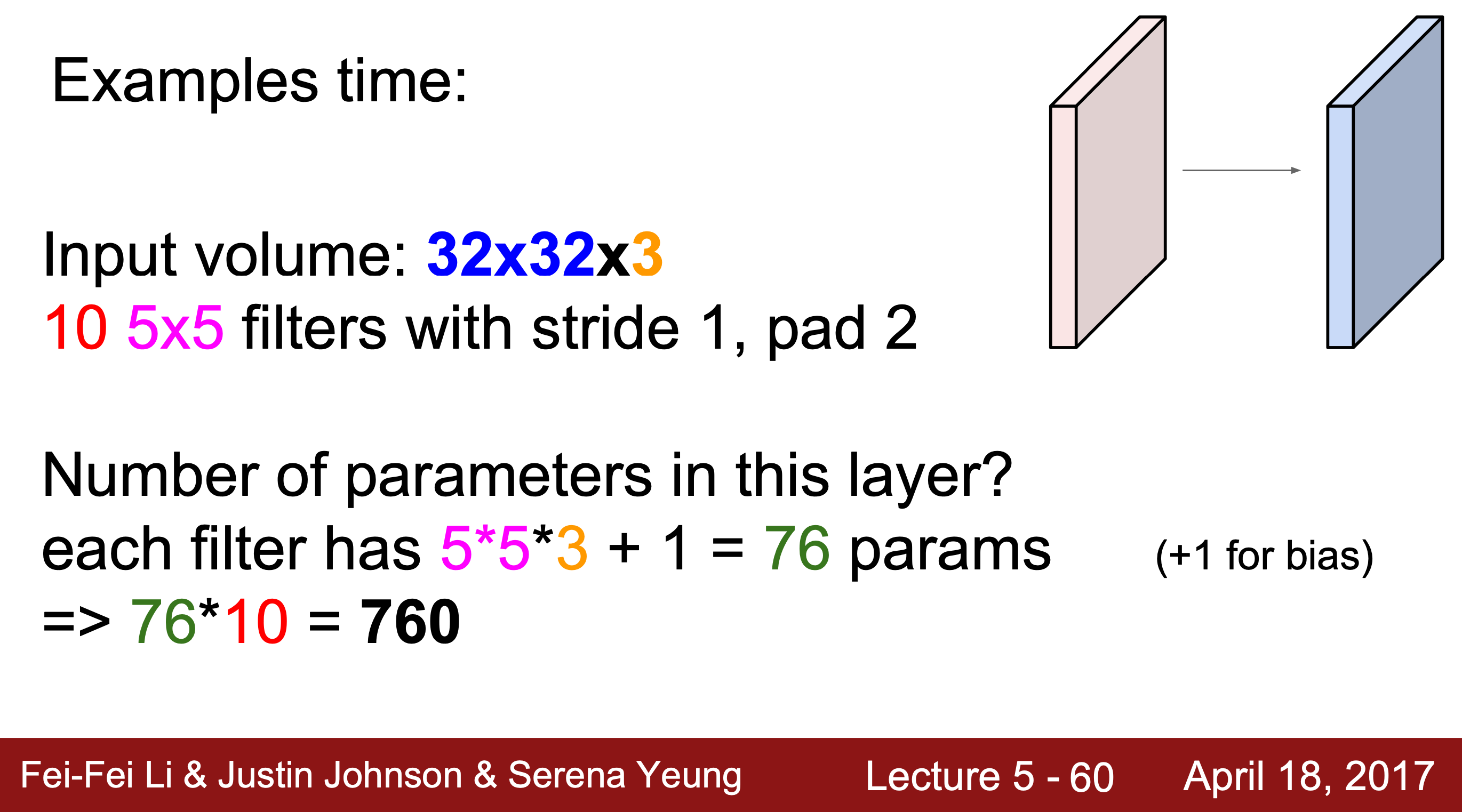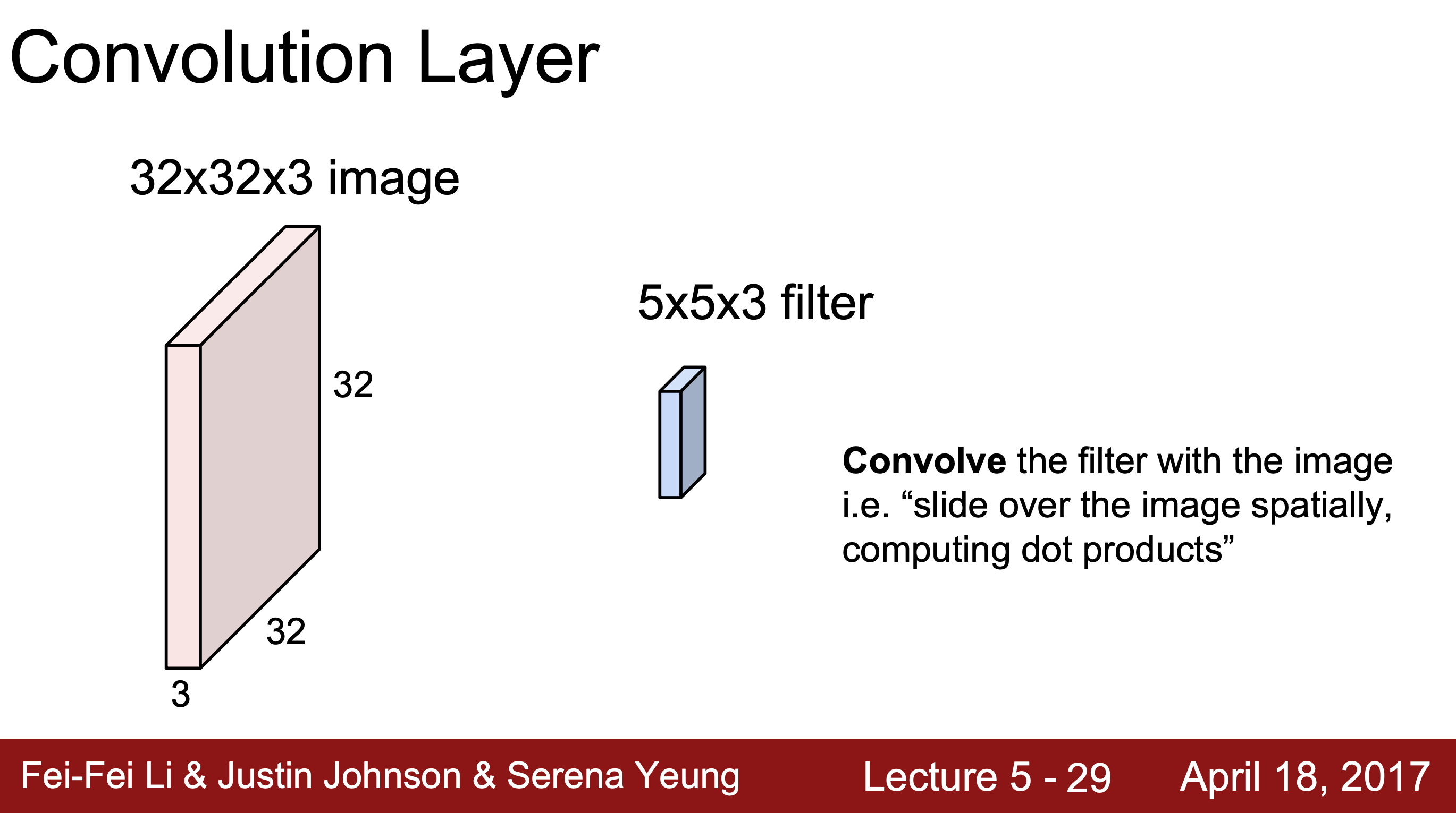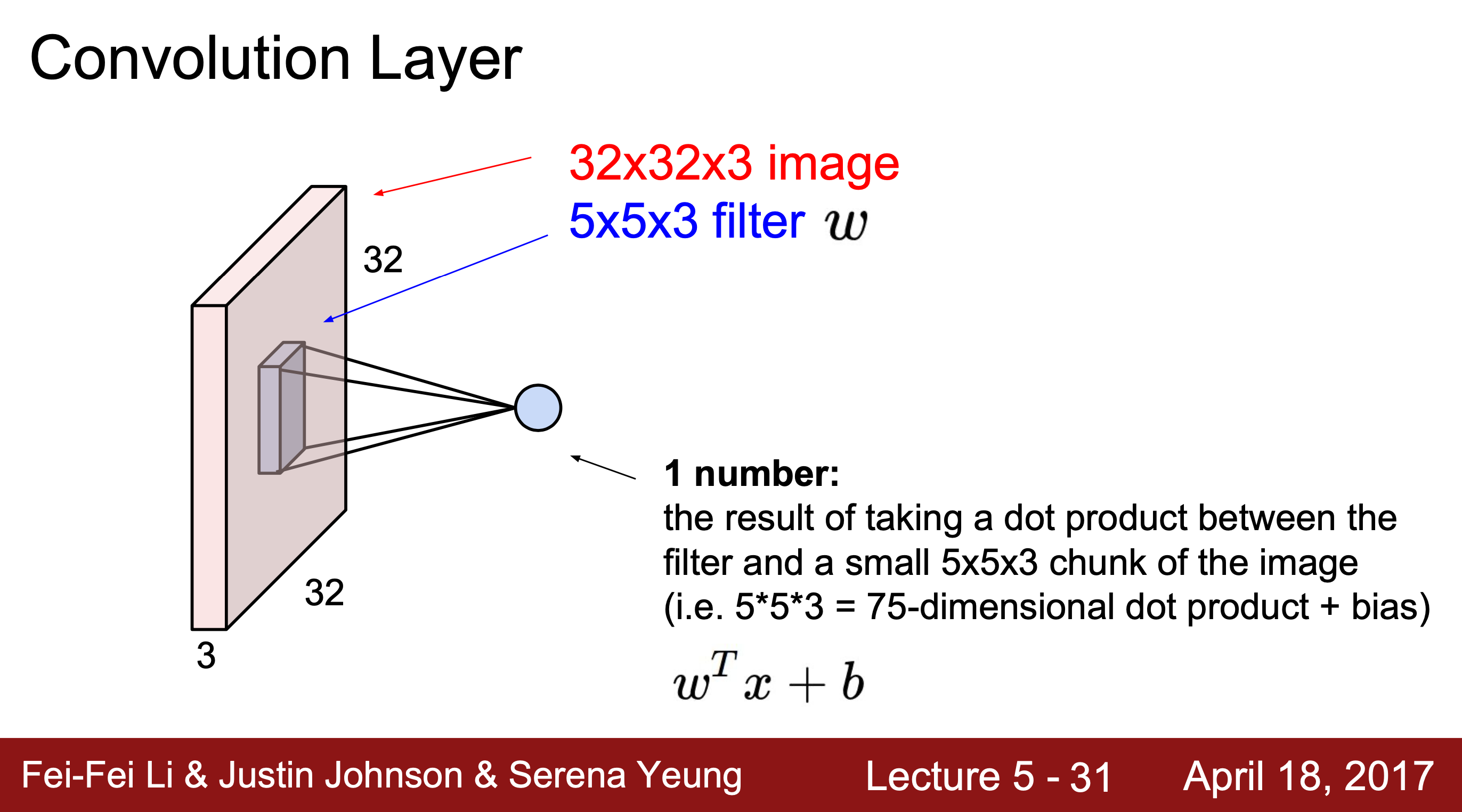 Convolution layer에 filter를 convolve하면 1개의 숫자가 나오는데 이때 결과값은 (전치된 W)*x + b를 통해 얻을 수 있다.