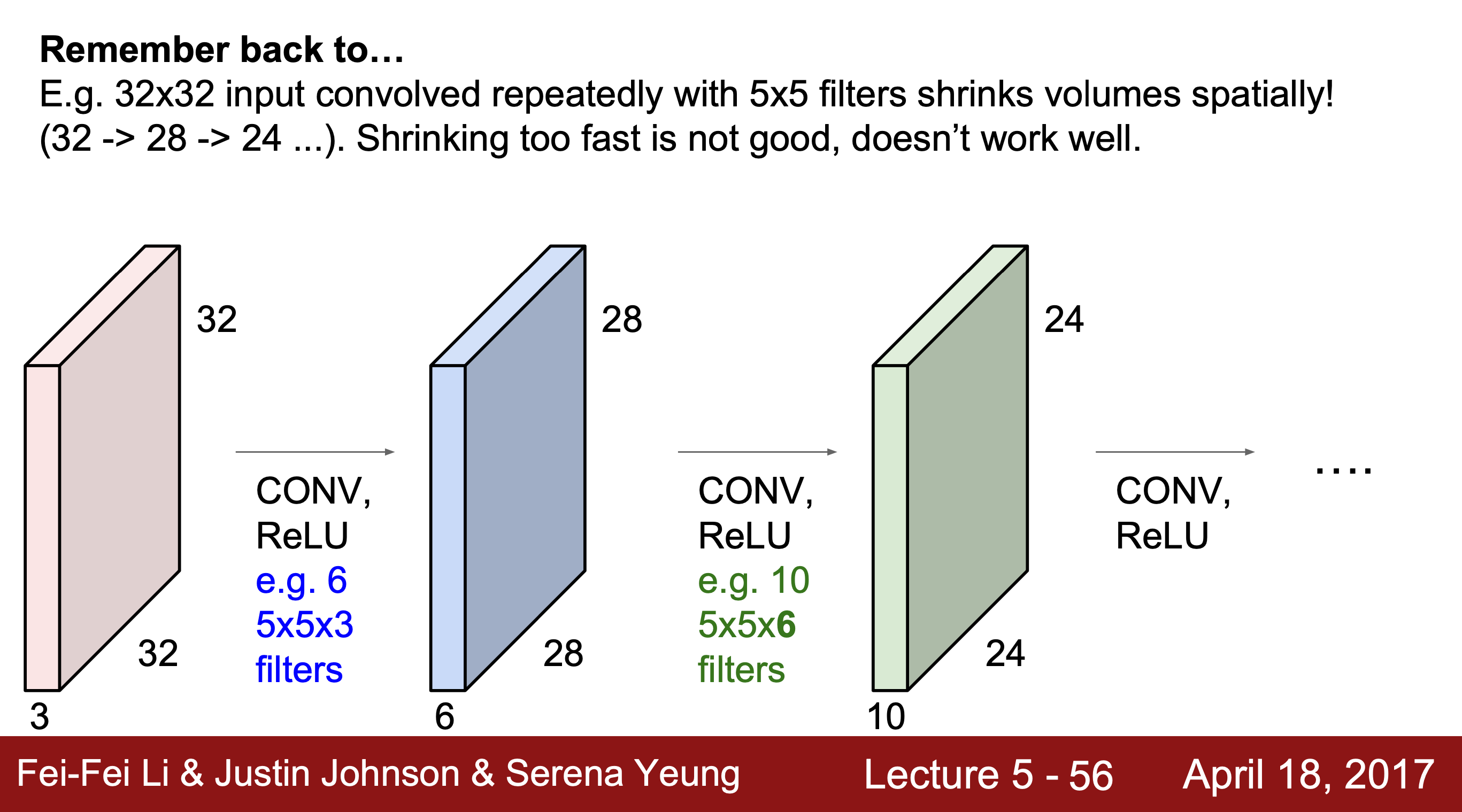 이때 filter는 중앙에 위치하기 때문에 상하좌우가 비게 되어 32x32 크기의 입력 이미지에서 크기가 줄어든 28x28크기의 activation map을 얻게 된다.