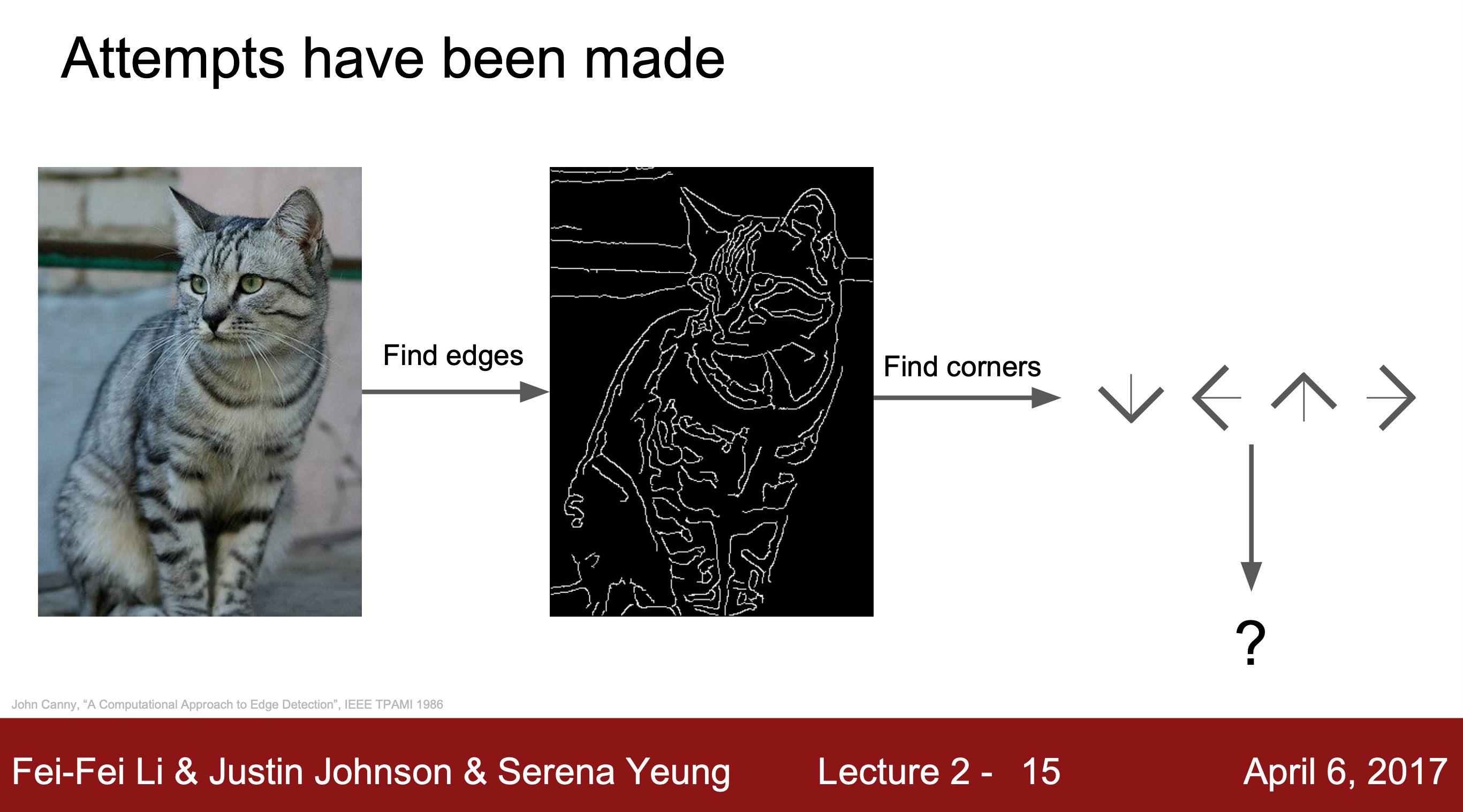 그동안 했던 시도 중 이미지의 가장자리를 계산한 다음, 모든 다른 모서리와 경계를 분류하는 방법이 있는데, 이는 가장자리가 시각적 인식과 관련하여 매우 중요하다는 Hubel&Wisel의 주장을 참고한 것이다.