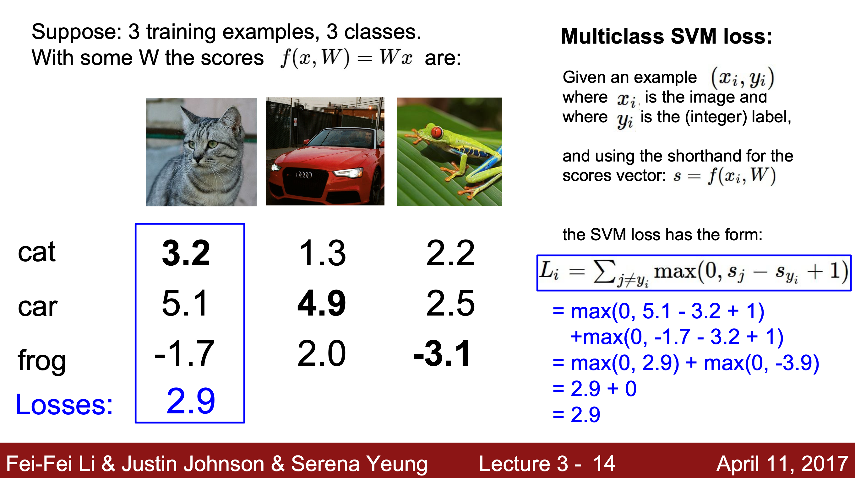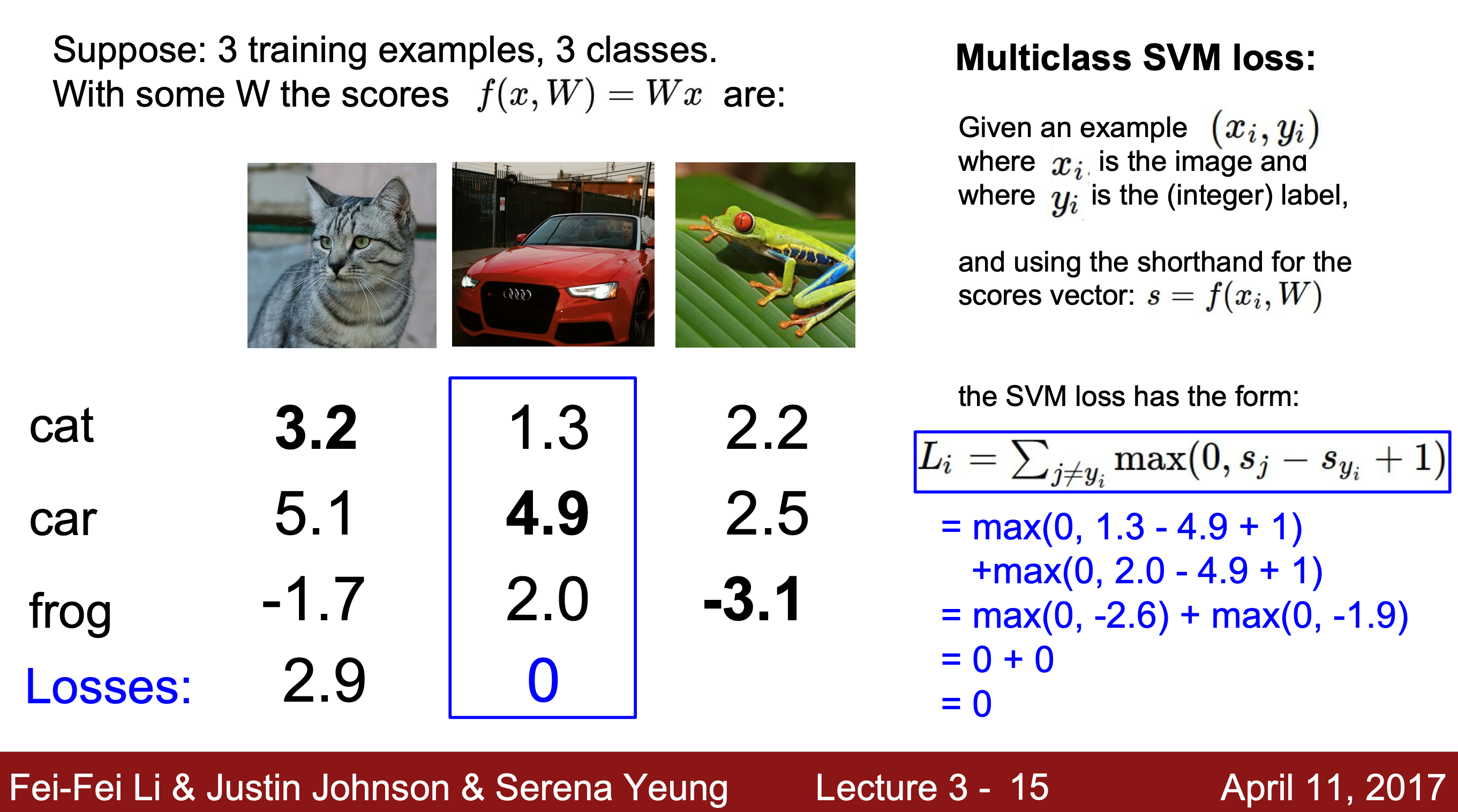 step1) 고양이 이미지가 입력되었을 때 각 클래스의 점수를 가져온다.Q1. What is the min/max possible Loss L_i?