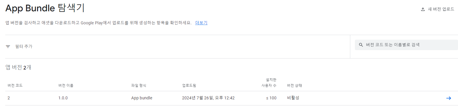 플레이 콘솔페이지의 앱번들 탐색기로 들어가서