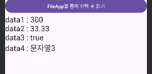 첫번째 어플을 다시 켜보면 값을 불러올 수 있다.