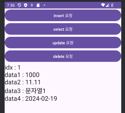 두번째 어플에서 select요청 버튼을 눌러도 값을 불러올 수 있다.