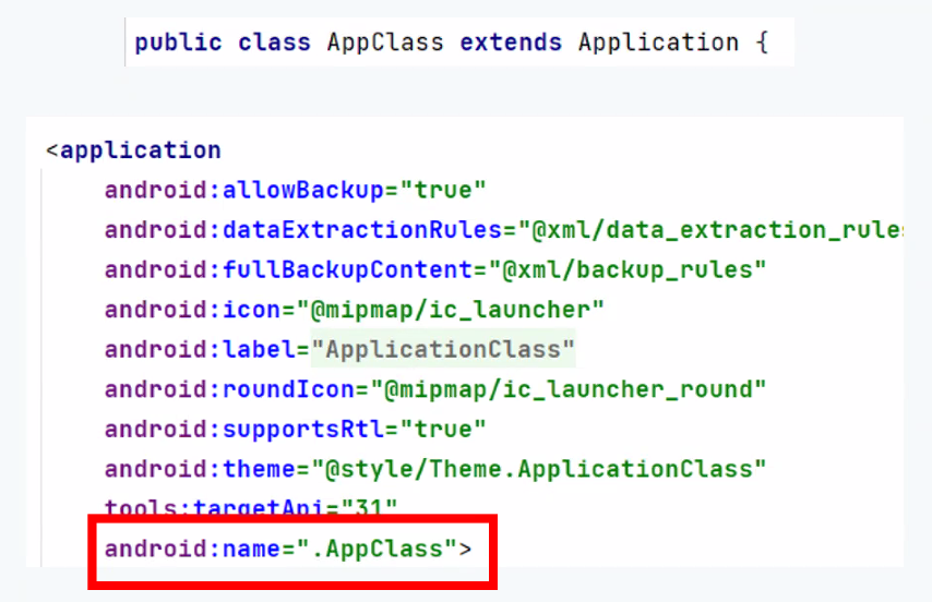 android:name=".AppClass">