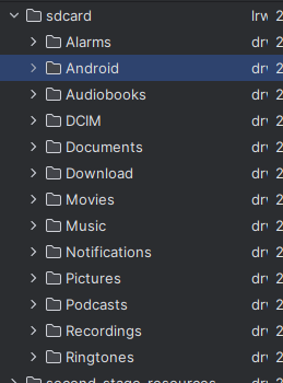 외부 저장소 : 단말기 내부의 공유 영역으로 모든 애플리케이션이 접근 가능하다. 단말기를 컴퓨터에 연결하면 탐색기를 통해 접근할 수 있는 영역을 의미한다.