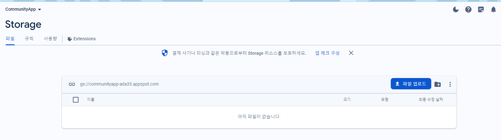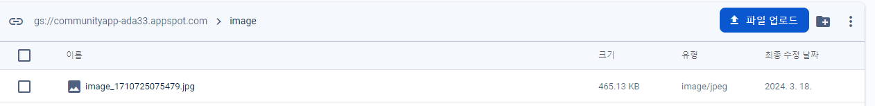스토리지에 이미지파일이 정상적으로 업로드 된 것을 확인할 수 있다.