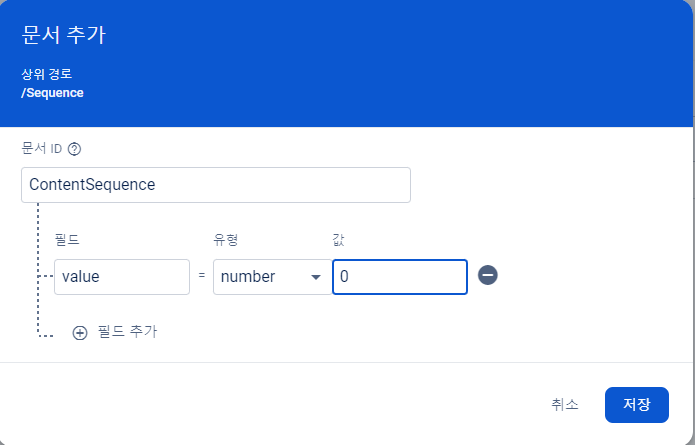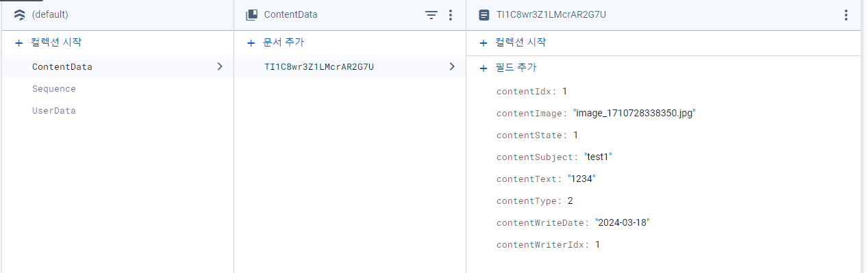// 추가된 문서 내부의 필드는 객체가 가진 프로퍼티의 이름이나 맵에 있는 데이터의 이름으로 동일하게 결정된다.