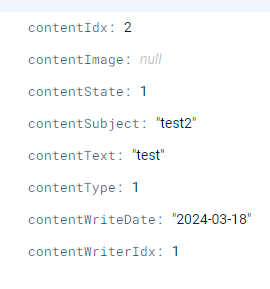 val contentModel = ContentModel(contentIdx, contentSubject, contentType, contentText, contentImage, contentWriterIdx, contentWriteDate, contentState)