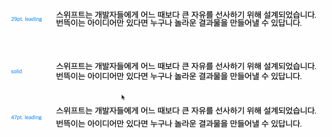한글은 영어에 비해 어느정도 띄워줘야 가독성이 좋다