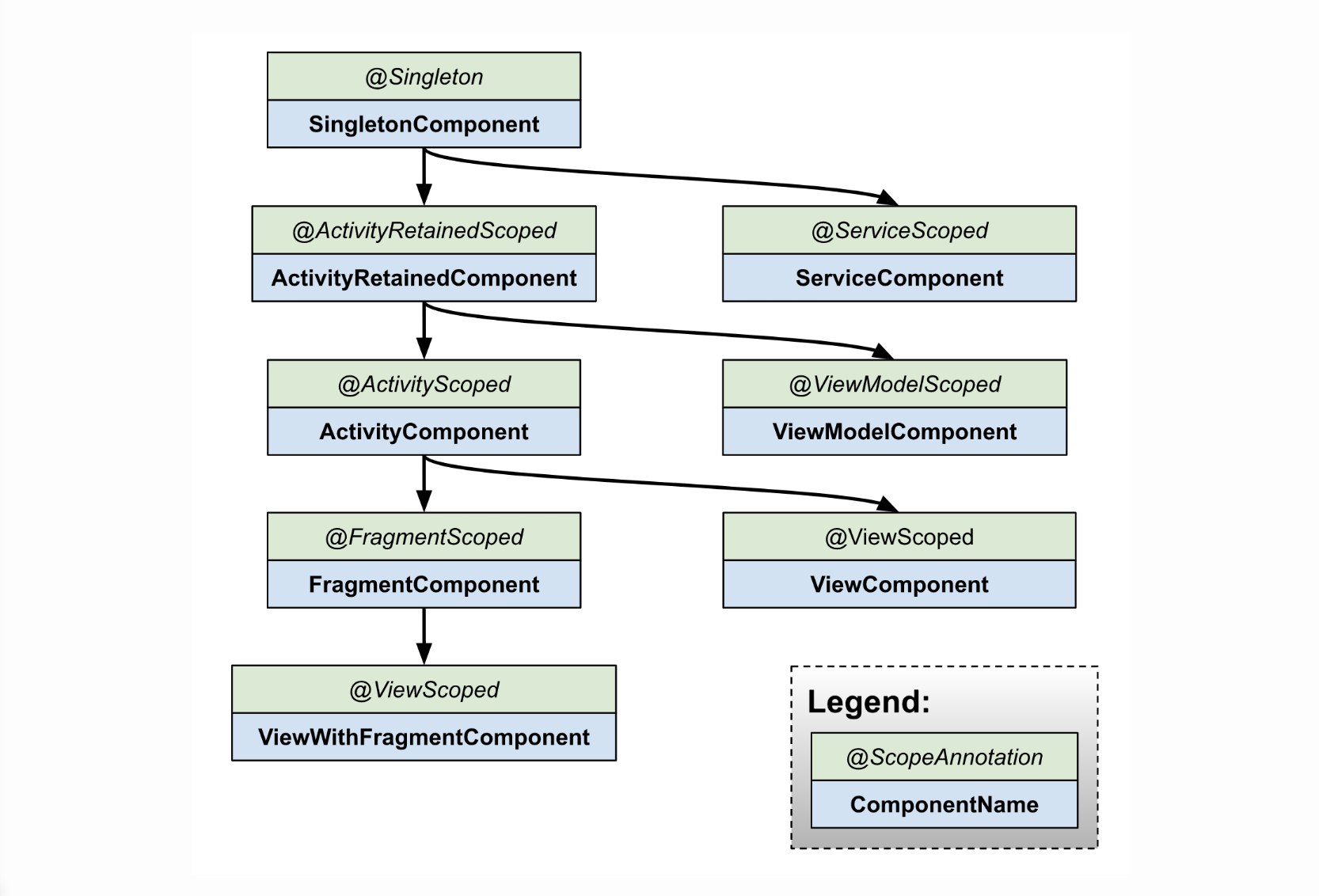 | FragmentComponent | Application, Activity, Fragment |