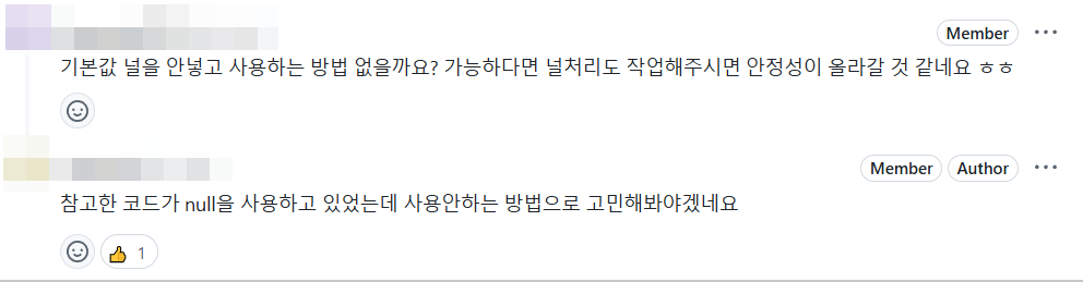 PR 후 코드 리뷰를 받으면서 아래와 같은 피드백을 받았다
