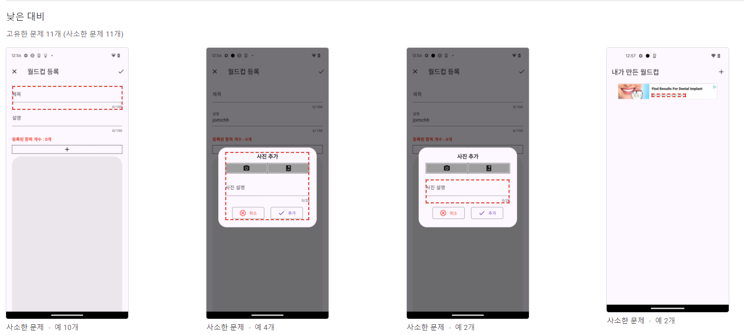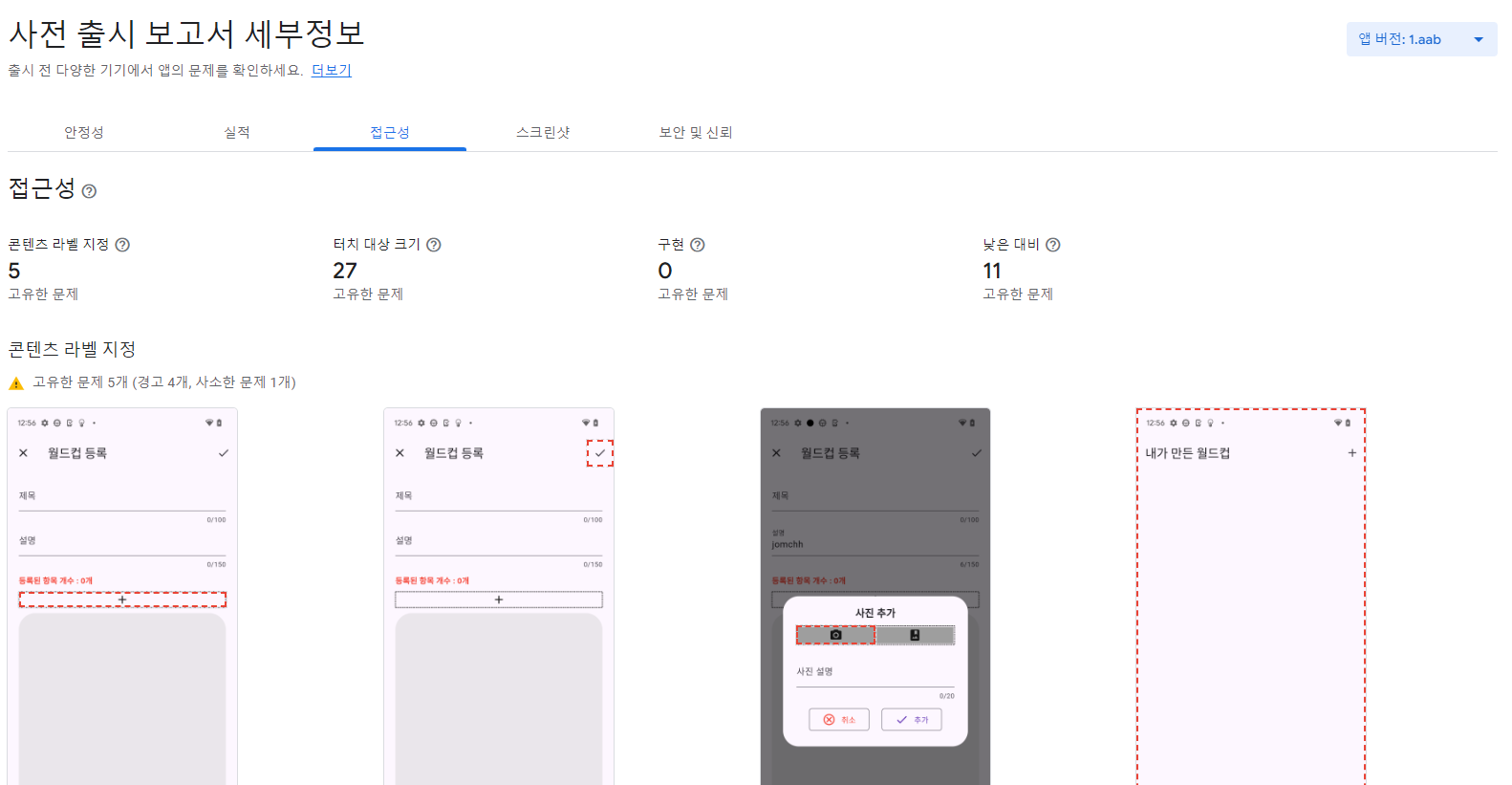 내 경우에는 플러터로 만든 월드컵 게임(?)을 출시하고자 게시를 하니 아래와 같이 보고서가 나왔다.