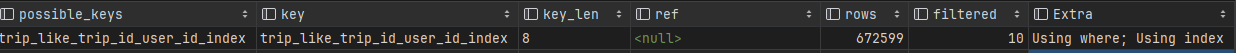 이를 해결하는 방법으로는 Group By를 사용하지 않는 것이겠지만, 사용해야 한다면 그룹핑할 컬럼을 인덱스화하면 해결할 수 있다. 서브쿼리에 trip_id를 인덱스화 해서 쿼리를 수정하였다.