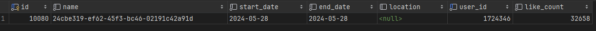 스케쥴링한 서비스가 끝난 후에 조회해보니 오차없이 정확한 좋아요 수가 저장되어 있는걸 확인할 수 있었다.