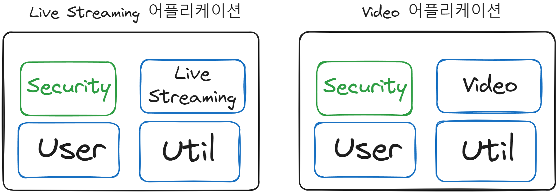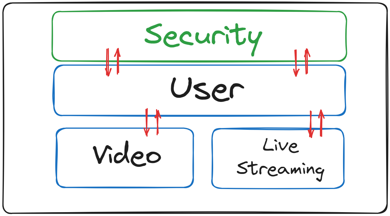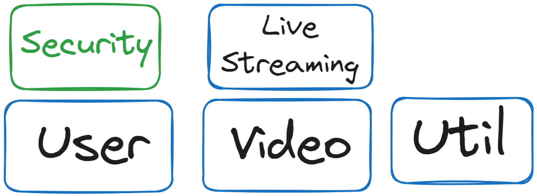 User클래스를 Security , Video, Live Streaming에서 모두 사용하며 Live Streaming을 따로 분리하게 되면 User 클래스와 Security를 복사해서 가져가야 했다. 뿐만 아니라 S3나 FFmpeg 와 같이 공통적으로 사용해야하는 기능도 복사해야한다.