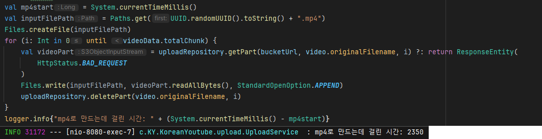 fun uploadVideoPartLast(video: MultipartFile, videoData: UploadVideoPartDTO): String {