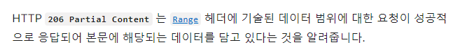 HTTP 상태코드에는 206 Partial Content라는 코드가 존재한다. 전체 Content가 다 온것은 아닌지만 일정부분만을 보냈고 그거에 대한 응답이 처리되었을 때 이 코드를 보낸다.