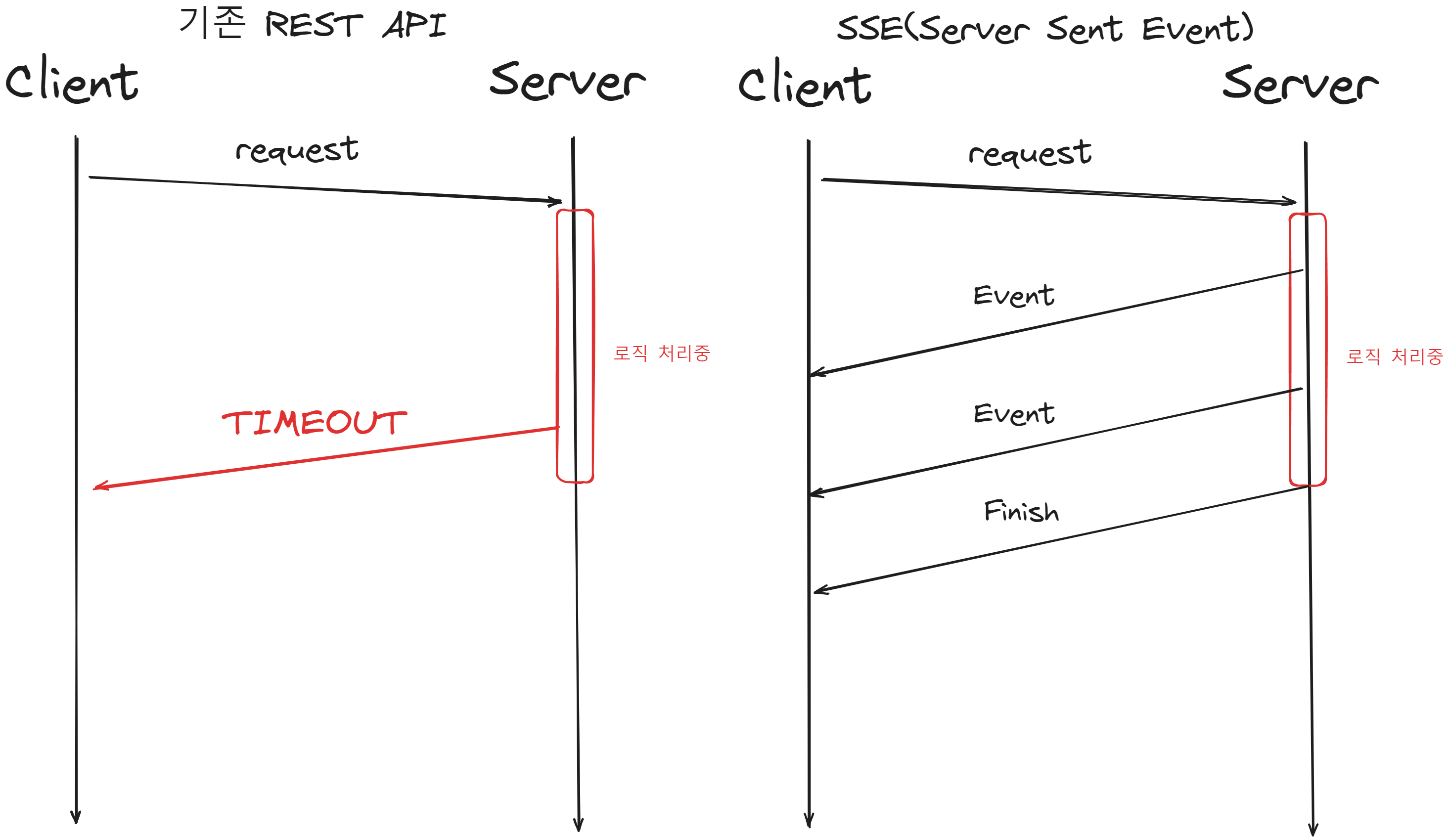 처음에는TIMEOUT만을 해결해보고자 적용한Server Sent Event였는데, 적용해보니 사용자에게 서버에서 일어나고 있는 상태를 알려주는 좋은 방식의 적용이었다고 생각한다.