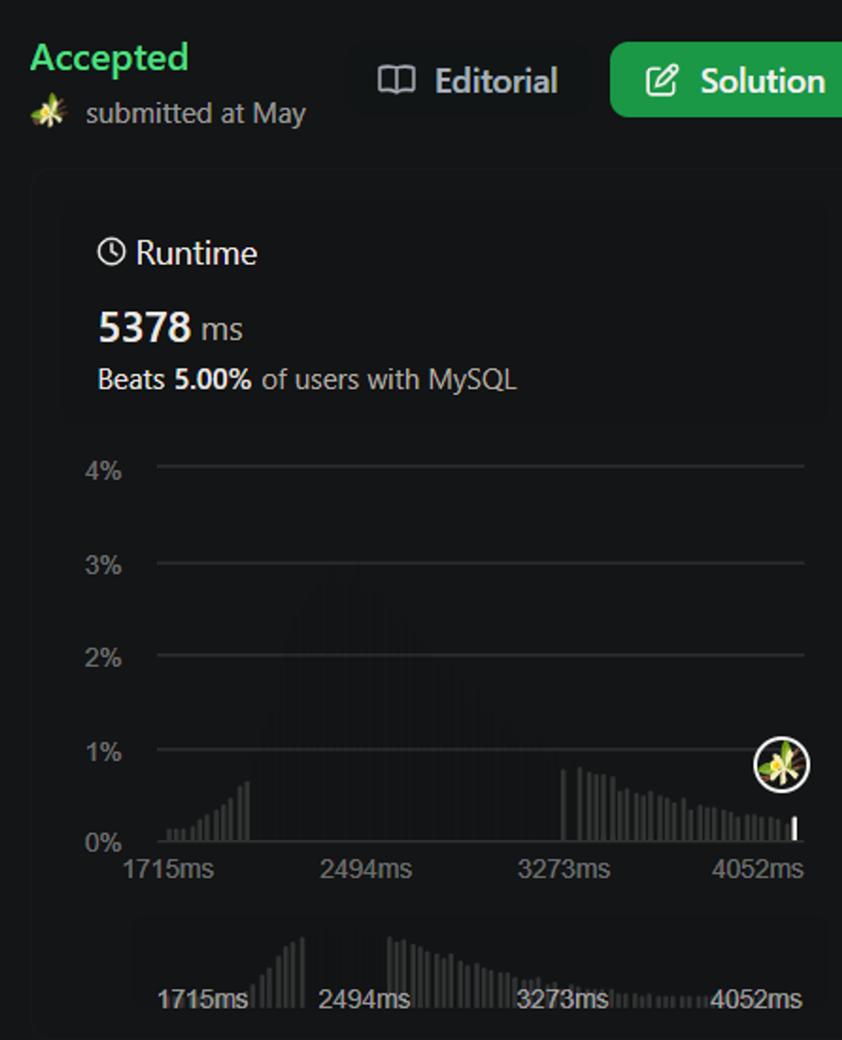 UNKNOWN (Limit) 1 7.38 7.38 1 row(s)
