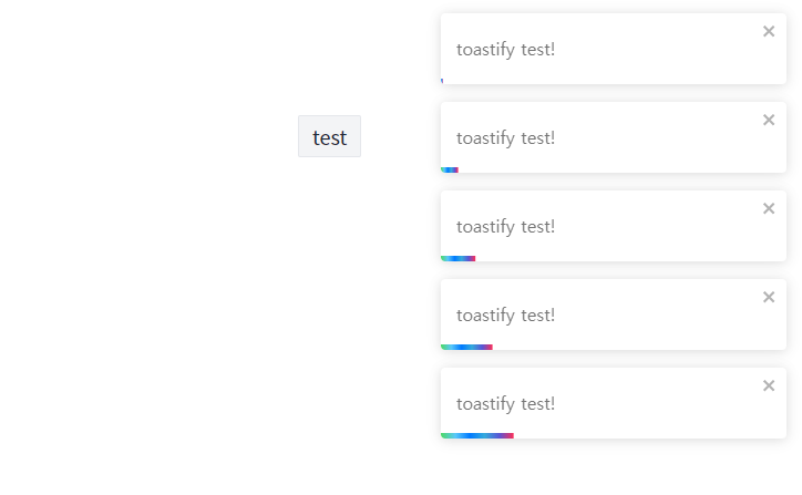 test 버튼을 클릭하면 내가 position에 지정한 대로 알림 창이 뜬닷. 나중에 스타일도 변경해 보고 싶다 How to style