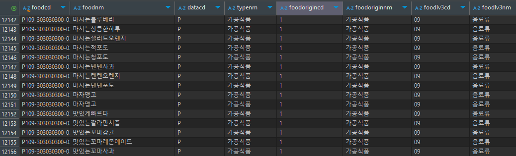 데이터를 가져올 API는 공공 데이터 포털에서 제공하고, 가공식품 및 음식 정보를 반환합니다.